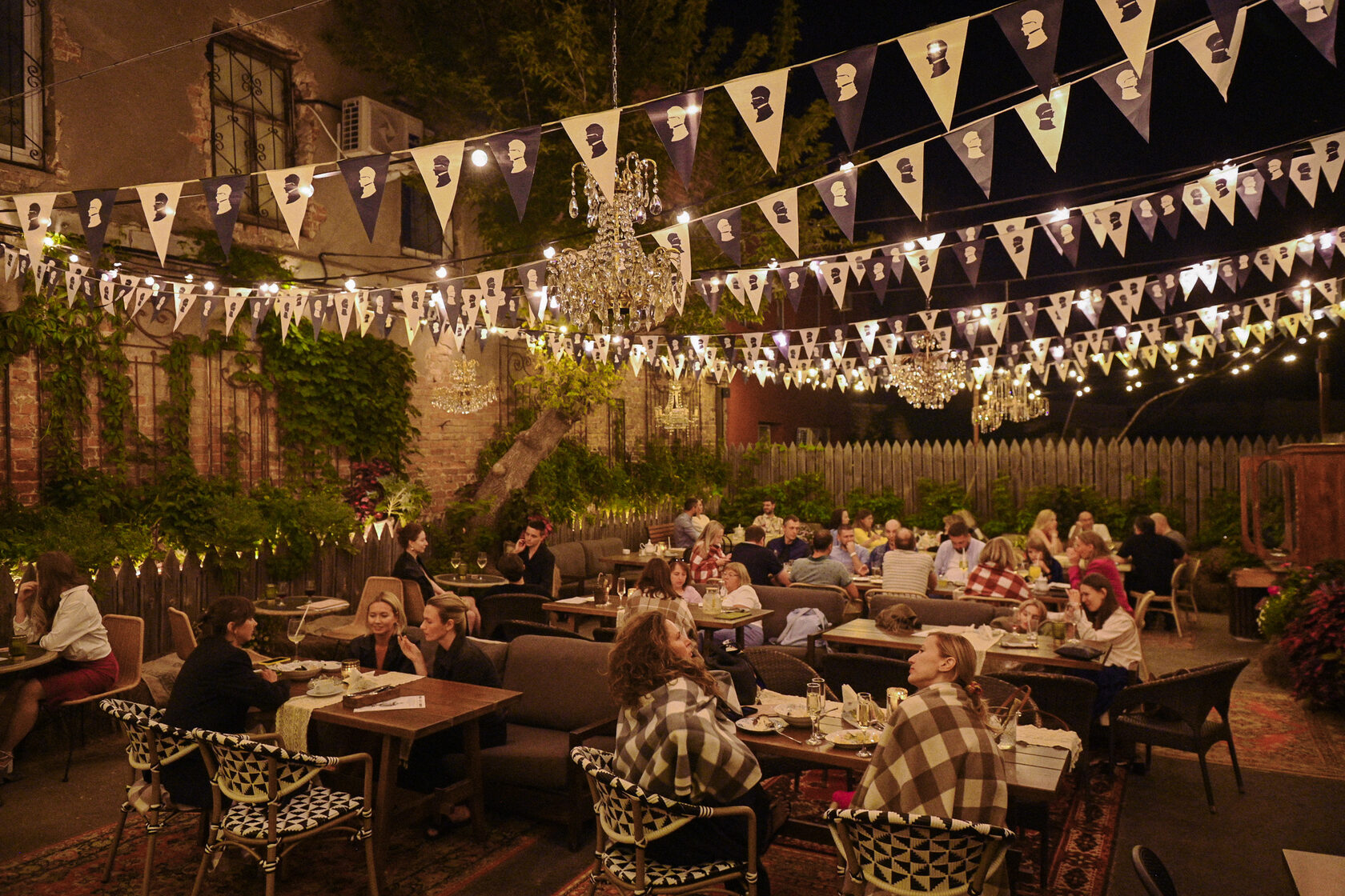 Летняя веранда Посольства представляет собой купеческую дачу / дачный дворик, а меню выполнено в стиле газеты. Особенность нашего летнего дворика - русский самовар на дровах.
